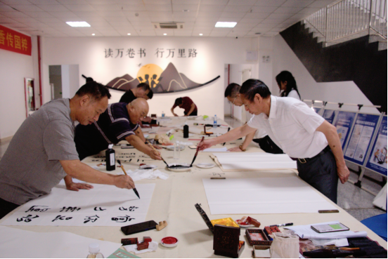 活动在图书馆一楼大厅举行,书法名家们现场挥毫泼墨,让师生们零距离领略书法艺术的魅力,本次书写作品内容不仅有唐诗宋词,还涵盖了毛泽东诗词,摘录了《习近平用典》部分内容。希望通过书法这种形式将毛泽东的经典诗词和习近平总书记一系列重要讲话、文章、谈话中所引用的古代典籍和经典名句书写出来,让广大师生能够从中汲取强大的精神力量,感悟中华优秀传统文化的博大精深。